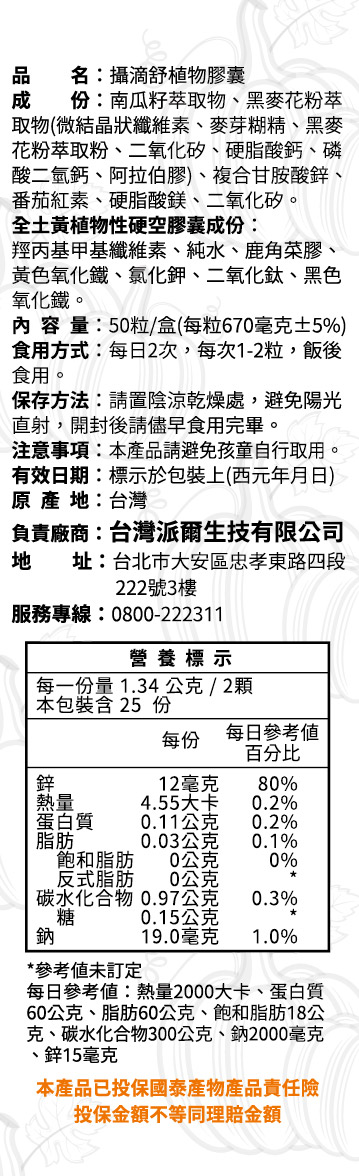 攝滴舒植物膠囊60顆盒裝